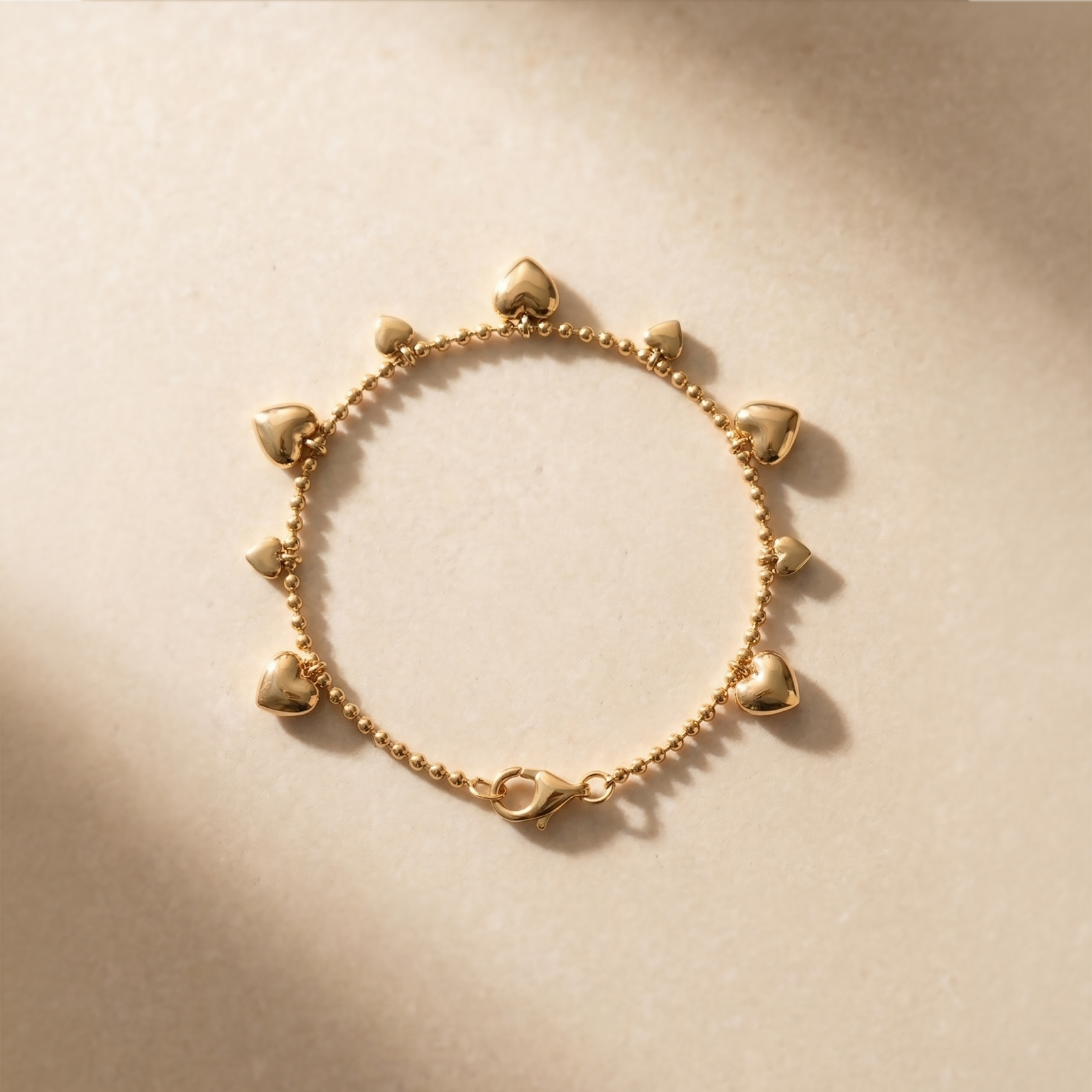 A delicate chain bracelet with a love-note charm — romantic, subtle and gift-ready. Plated in 18K PVD gold and designed to resist tarnish and rust, waterproof and hypoallergenic.