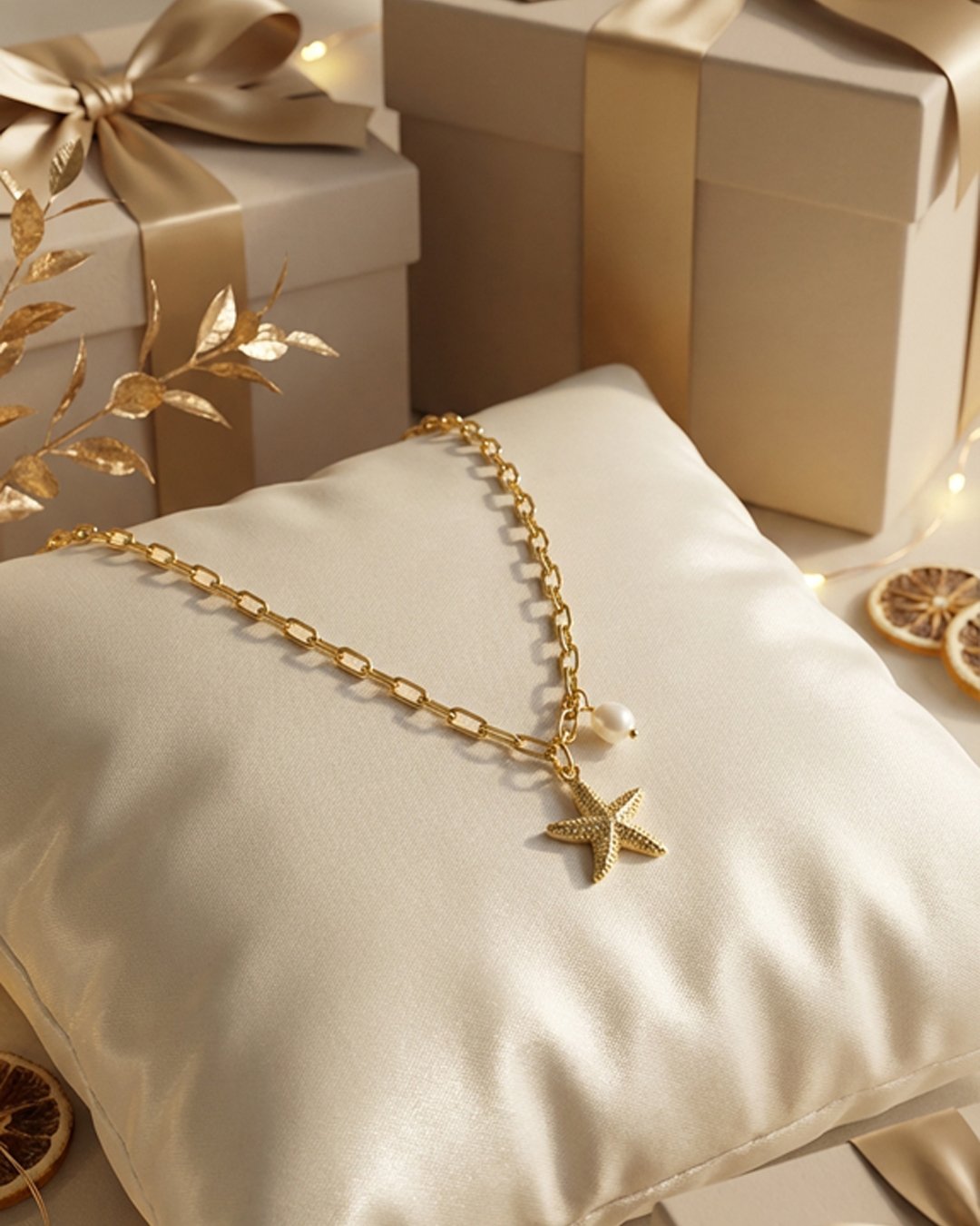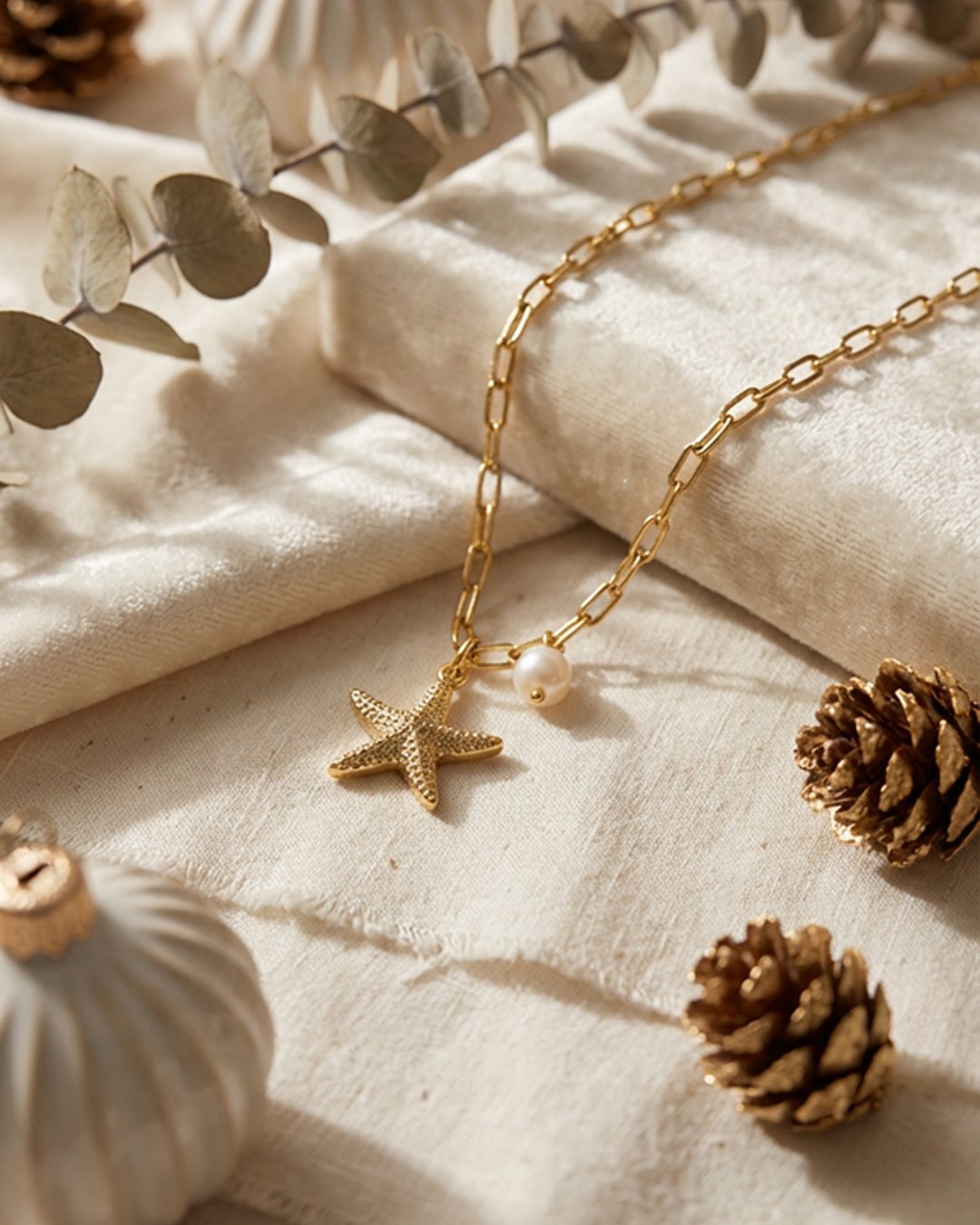 Ocean-inspired necklace with a fresh, luminous aura; light and breezy in its aesthetic. Finished in 18K PVD gold and treated to be anti-tarnish, rust-proof, waterproof and hypoallergenic.