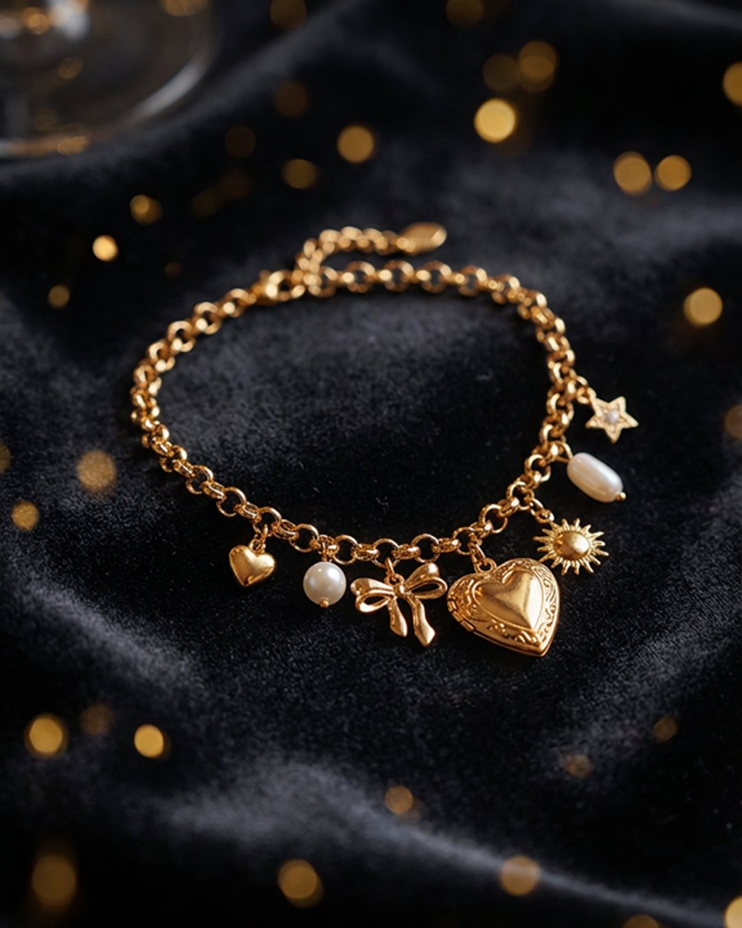 Radiant heart motif with a bright, sunlit finish that stands out on the wrist. 18K PVD gold plated for lasting color; anti-tarnish, rust-proof, waterproof and hypoallergenic.